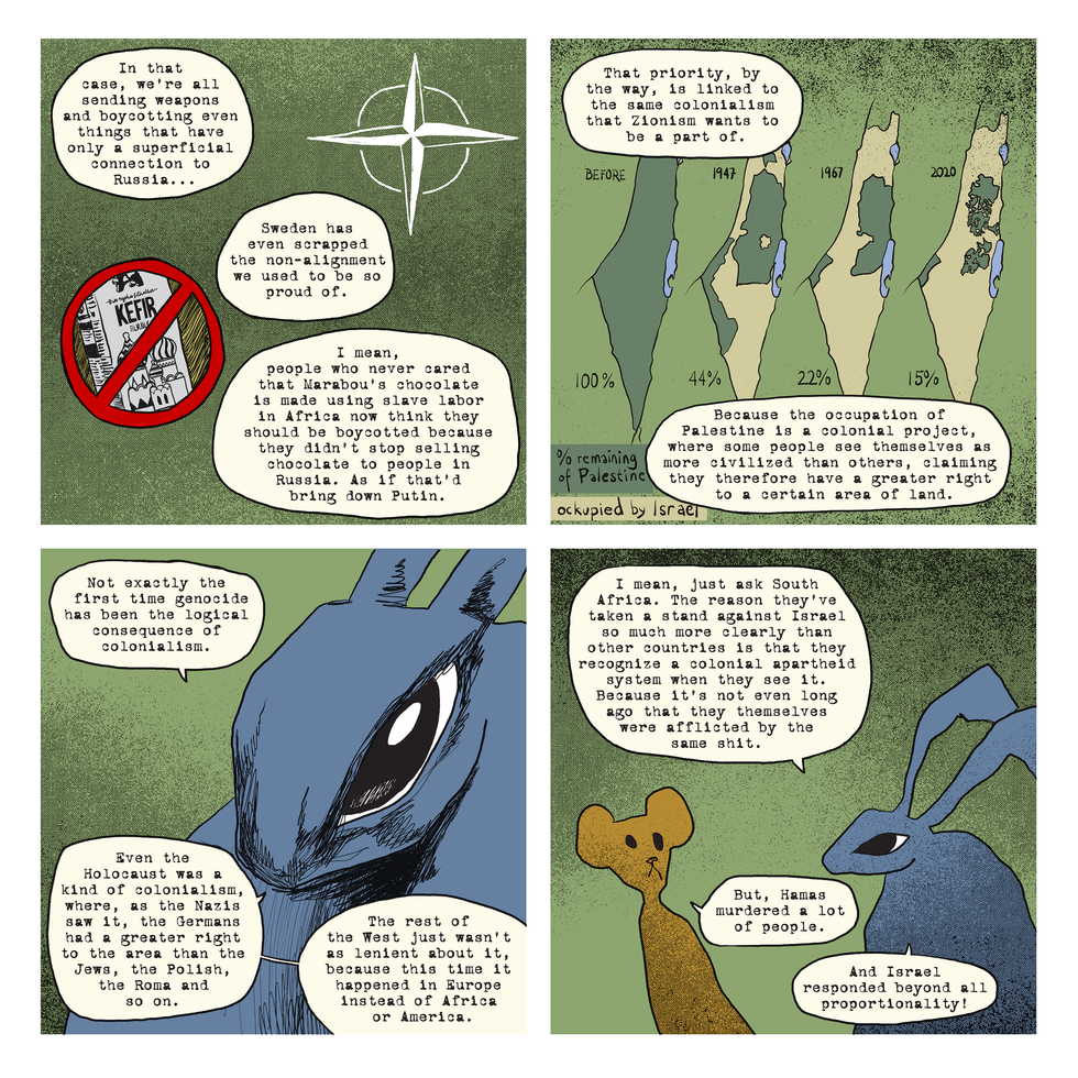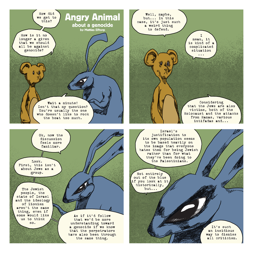 Angry Animal - Part I Mattias Elftorp1 day ago1 min readA comic by Mattias Elftorp.Previously published on cartoonistsforpalestine.com, in Proletären (in Swedish), and as a zine.